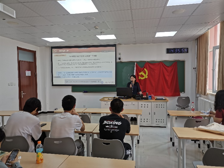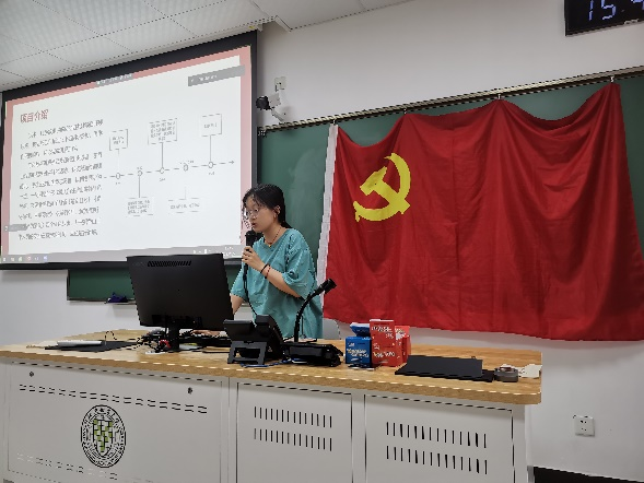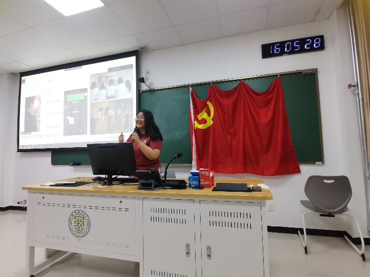 在玄老师的党课结束后,党支部宣传委员杨毓雯与同学们分享习近平新时代中国特色社会主义思想与中华优秀传统文化之间的传承与发展关系。杨毓雯选择了“实事求是”、“中国梦”、“人类命运共同体”等八个关键词对其进行了内涵的分析并分别追溯至它们在中华优秀传统文化中的源头。习近平总书记指出:“中华文化源远流长,积淀着中华民族最深层的精神追求,代表着中华民族独特的精神标识,为中华民族生生不息、发展壮大提供了丰厚滋养。”习近平新时代中国特色社会主义思想就是生根于中国的历史与现实实践之中,中华优秀传统文化是其形成与发展的重要养料。杨毓雯同学在分享的最后希望大家能够多阅读传统经典,并从中汲取养料,用其中的智慧帮助我们解决生活中的难题。