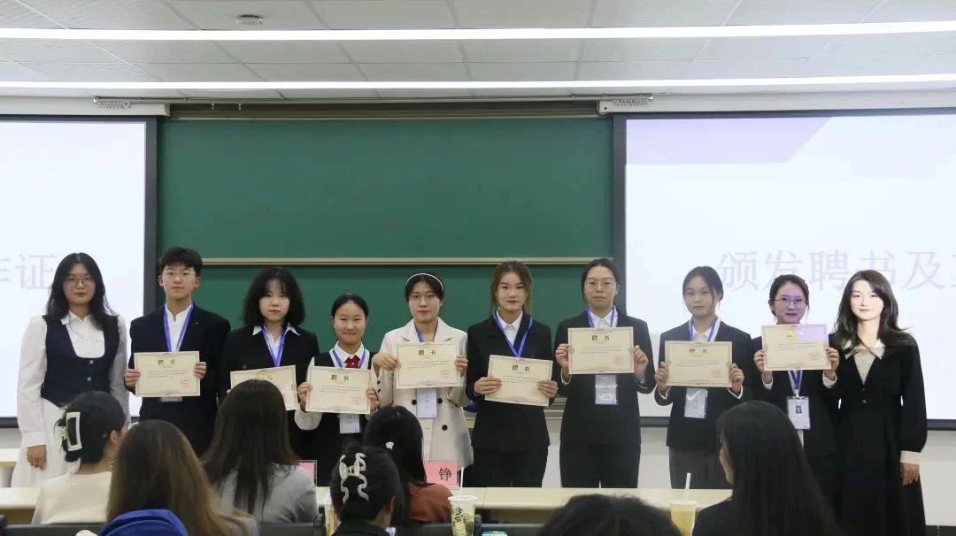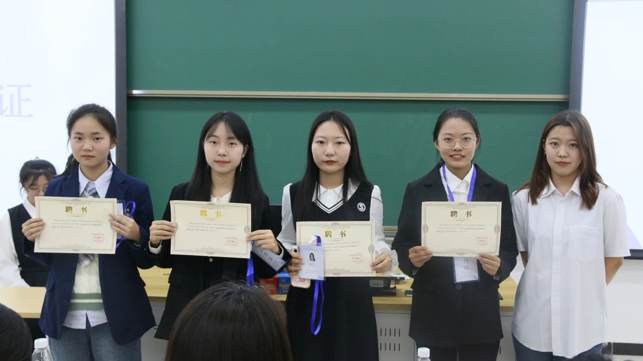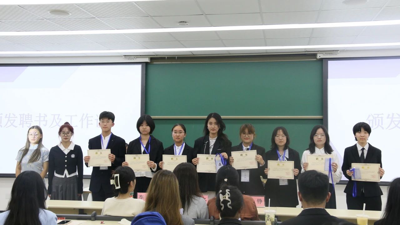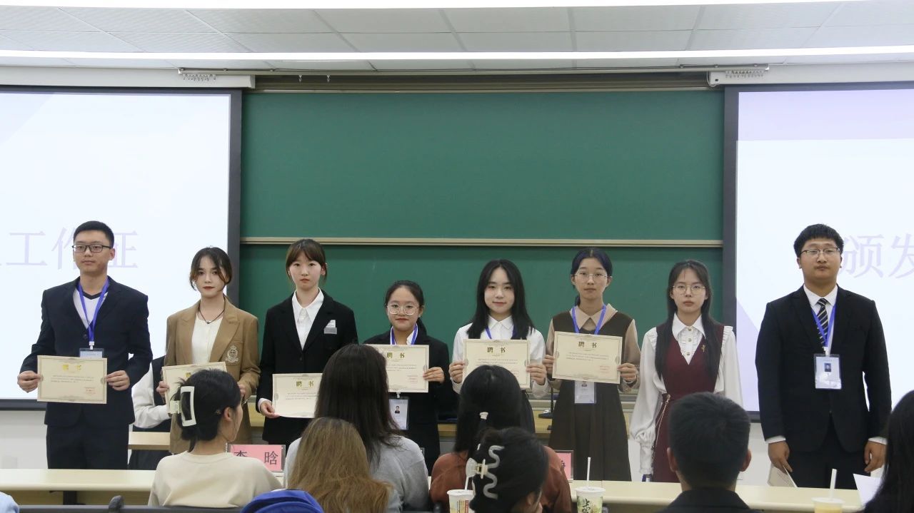 文学院团委、学生会、研究生会各部门部长、干事依次上台进行了部门及自我介绍,并颁领了聘书与工作证。部长们分别介绍了各部门的职能并表达了部门愿景,干事们饱含青春力量的自我介绍讲述了对未来工作的期待。