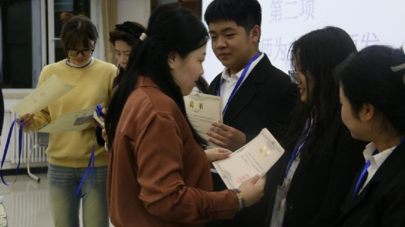 团委书记玄铮老师向同学们提出了三点要求,希望大家要有大局意识和集体观念,时刻牢记团学是一个整体;其次,在工作中要乐于学习,勇于挑战,成长为一位细心、耐心、善于交谈的人。她也向全体同学提出了三个问题:“为什么进入团学?进入团学要做的是什么?最后从团学学到了什么?”,请同学们在工作和生活中寻找答案。研究生辅导员李晗老师也强调,学习是长期无止境的,希望大家心怀远大梦想的同时,不要忘了脚踏实地,能在工作和生活中都有所收获。随后,玄铮老师宣读本研团学任命书,并与研究生辅导员李晗老师为本研主席团、部长团颁发聘书和工作证。