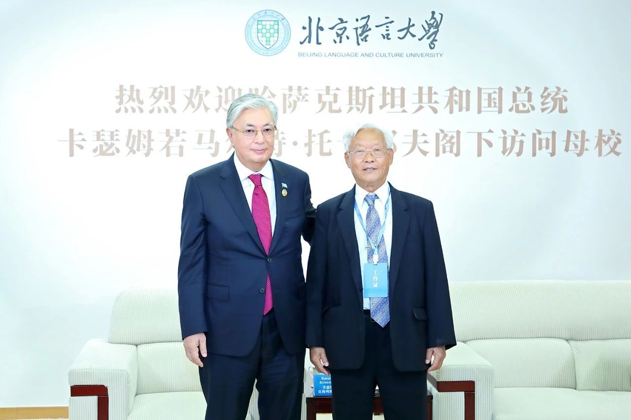 段鹏校长首先代表学校对总统阁下的莅临表示热烈欢迎,并表示北语一直以拥有托卡耶夫总统这样一位杰出校友感到荣幸与自豪。值此“一带一路”倡议提出十周年之际,北语喜迎阿里·法拉比雕像,并与校园里的孔子雕像遥相呼应,不仅代表着人类文明穿越时空的对话,也将成为中哈永恒友谊的象征。北京语言大学将以总统此次访问为契机,成立哈萨克斯坦研究中心。未来,北语将继续落实总书记指示,做好“亚洲经典互译计划”牵头单位相关工作,支持哈方汉学家及青年学子来华交流学习,开展语言教育等多学科合作,推进中哈全方位教育交流合作。