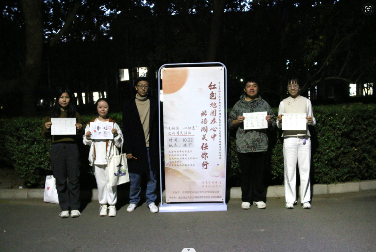 2023年10月22日下午,文学院团委于北语校园内举办了“红色地图在心中,北语闯关任你行”答题闯关活动。