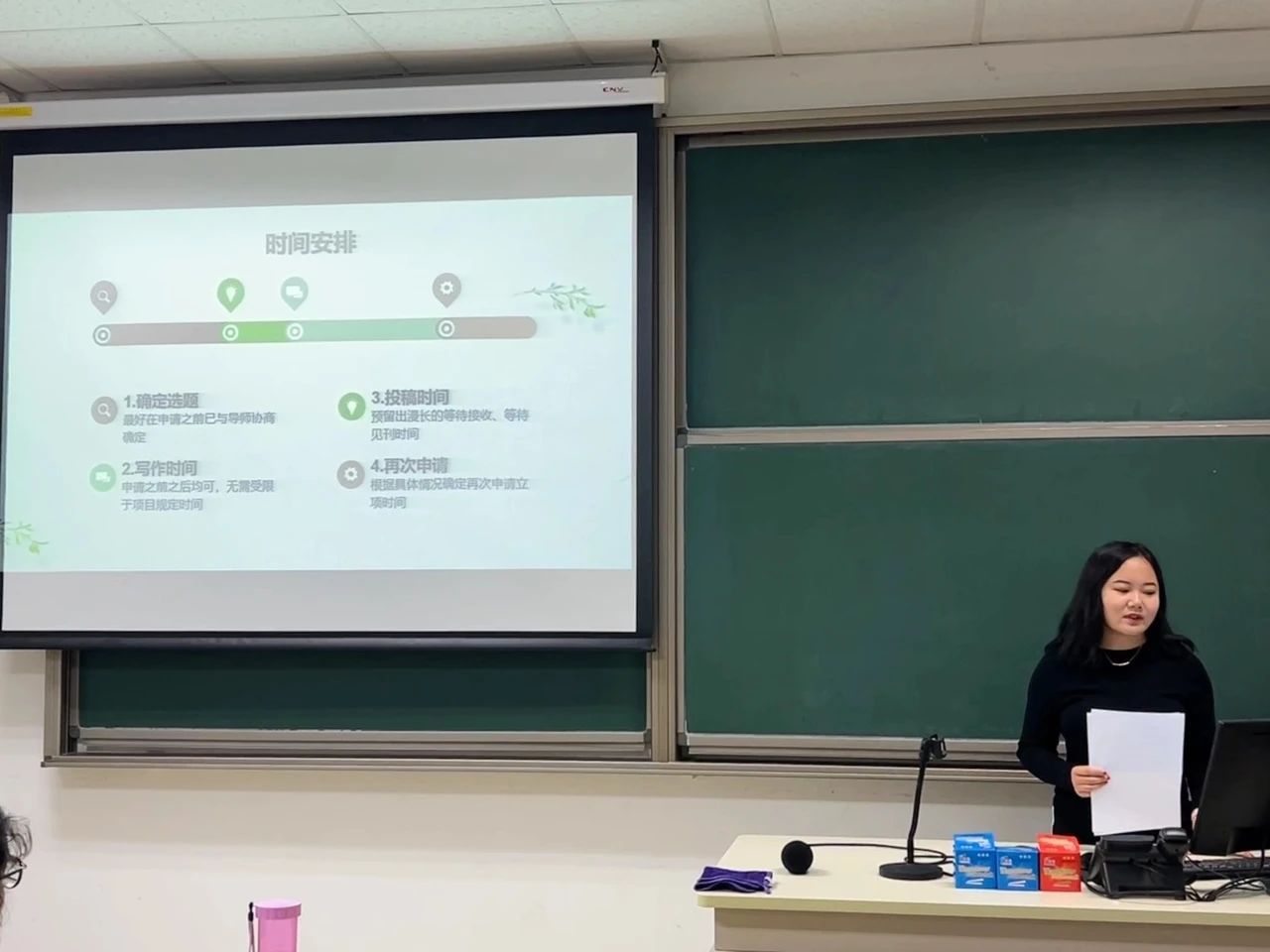 赵月同学根据自身立项与结项经验,以时间为线索向同学们展示了创新基金立项的完整过程。赵月同学提出可以较早与导师沟通选题意义,“项目申请书是微型的开题”,建议同学们以此了解毕业论文的开题方法,并从选刊方法、投稿流程两个方面详细讲解结项的要求与注意事项。赵月同学还提出在文学文本中要有深远的文学史视角,培养对权威的置疑意识,把握好输入和输出的关系,坚持多读多写这一有效的学习方式。