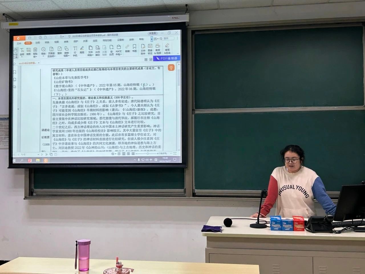 李礼同学围绕项目申请要求,从选题内容、研究视角等多方面入手进行详细讲解。李礼同学提出,研究生创新基金项目的选题需要有创新性,并从研究对象、研究视角和研究资料等方面讲解了选题价值,希望同学们能秉持“以小见大”和“由近及远”的视野着手开展。李礼同学以自身项目为例,向同学们介绍了具体的写作内容和写作方法,她提出,内容概要与文献综述之间存在密切关联,基金立项需重点展示选题研究的意义与价值。