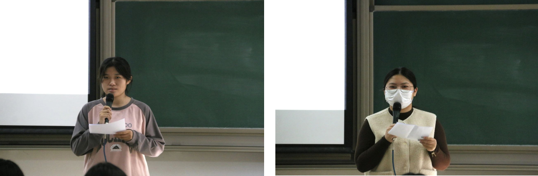 学业被帮扶人代表梁萱与学业帮扶人代表何晓怡分别上台发言。梁萱同学首先表达了参与本次活动的激动心情,她希望能够通过这一活动,与学业帮扶人共同进步,同时也表示自己将保持严谨认真的学习态度,在课前和学业帮扶人积极沟通,以便在帮扶活动中更有针对性地学习;学业帮扶人代表何晓怡表示正是因为曾经受到过学长学姐们的热心帮助,所以也十分愿意去帮助低年级同学解决学业问题,将文学院这一优良传统传承下去,同时还勉励所有学业帮扶人,尽心尽责,用心完成本次的学业帮扶活动。她还希望在活动中认识更多的朋友,共同进步,共同提升。