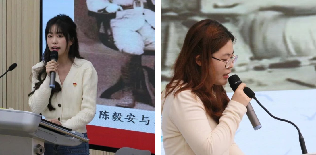 文学院教师第三党支部成敏教授带来“花外春来路,芳草不曾遮——投身时代洪流,勇担社会使命”主题微党课,她从清代张惠言的五首诗词入手,讲述了张惠言师生的人生故事,阐释文学如何与时代、与社会责任相联系,青年学子应当怎样承担属于自己的责任。她寄语青年同学,希望同学们要像“花外春来路,芳草不曾遮”所说的那样,即使无法成为春花,也要成为一棵不被遮掩的芳草,努力追求春色,寻觅心中真正的“春天”。比较文学与世界文学文艺学党支部党员姜迈千带来“诵读百年红色书信,弘扬青年信仰力量”主题微党课,一封封红色书信汇聚了中国共产党人的初心使命,书写了革命先辈甘于奉献、敢于牺牲的精神,解读百年征程中的五封动人书信,汲取信仰的力量;本科生第一党支部党员王涵之带来“如果国宝会说话——中国传统文化的创新实践”主题微党课,讲述了一件件文物、国宝背后的故事与文化内涵,文物承载着历史、记录着文化、传承着文明,让文物活起来,可以让我们坚定文化自信,凝聚发展力量。