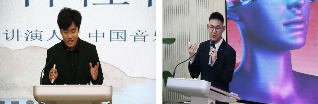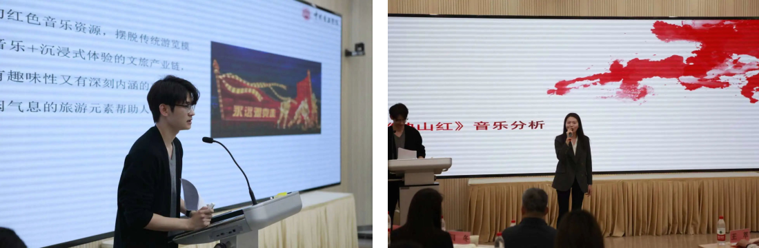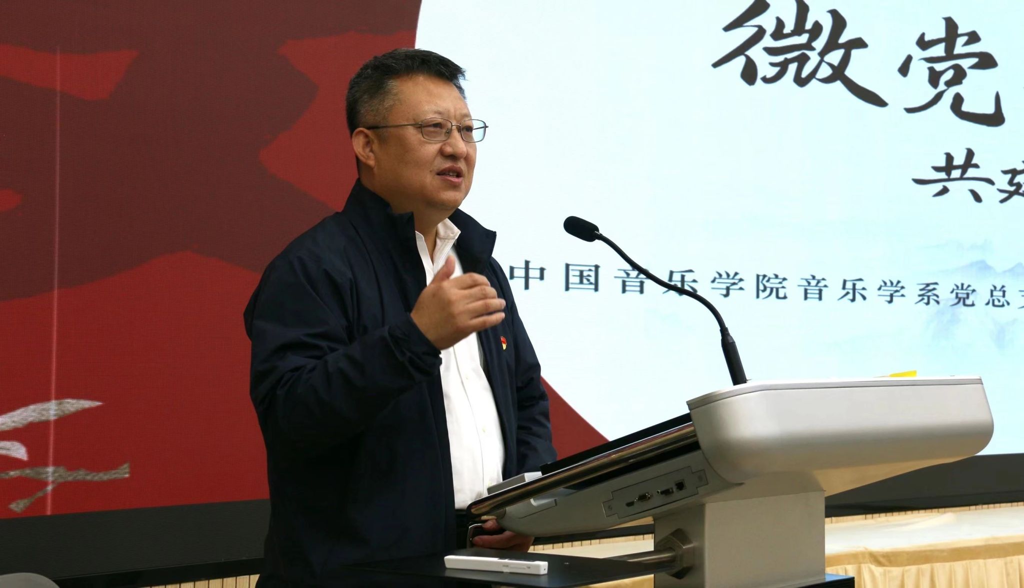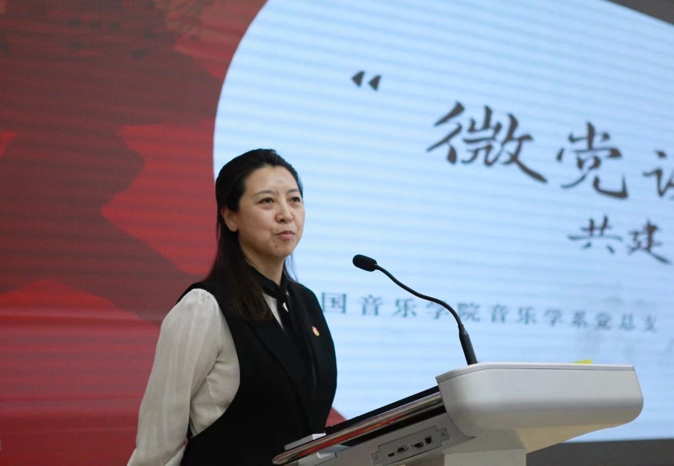 “音乐微党课——让传统音乐在创新中绽放”环节由中国音乐学院音乐学系本科生党支部书记冯茵瑶主持。音乐学系教师党支部的袁环副教授聚焦“小提琴协奏曲《梁祝》对中国传统音乐的创造性转化”的主题,分别从显性层面与隐性层面来阐释这一主题。她总结到,小提琴协奏曲《梁祝》将多种传统音乐素材融会贯通,中西合璧,雅俗共赏,具有鲜明的民族性、时代性和艺术性。音乐学系本科生党支部学生牟洲、何雅雯、林民栋以及研究生党支部学生李成城与张炜悦、孔莹分别带来“北京民歌《探清水河》的多样性转化与实践”、“我与《中国音乐地图》”、“元宇宙中的戏曲音乐”、“‘双创’视角下的红色歌曲的传承与发展——以《映山红》为例”、“河北民歌与歌剧《白毛女》中喜儿的音乐形象塑造”等五场主题微党课,选取典型的例子,并从调式分析、演唱方式、歌曲背景、主旨情感等不同的角度探讨并阐述传统音乐是如何在创新中绽放的。