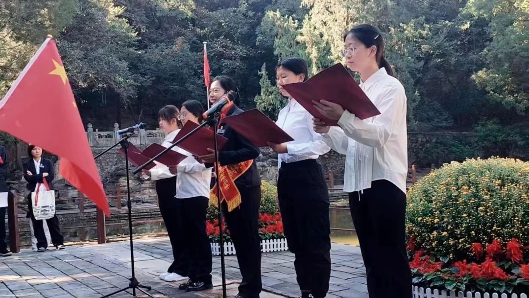 2023年国庆假期期间,文学院本科生党支部选派学生代表参加了在香山公园举办的“十月金秋游香山,赶考路上庆华诞”主题活动,歌唱美丽祖国,讲述动人故事,同庆祖国华诞。讲解志愿者们与党的二十大代表、金牌讲解员贾莉同志共同诵读《以时代之眼,我们这样看中国》诗篇。