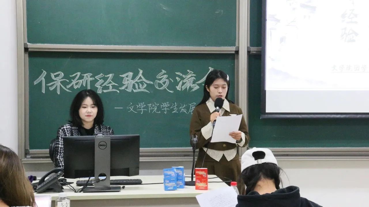 2023年11月24日晚7:00,文学院团委于教四101举办了保研经验交流会。五位20级同学为大家分享了自己的保研经验。本次分享会由学生发展中心干事梁萱主持。