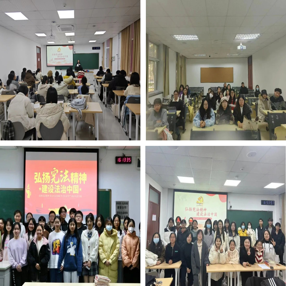 文学院各班还积极组织开展宪法知识竞赛、讲座等活动。2021级汉语言文学1班、2021级汉语言文学2班、2022级汉语言文学1班、2023级汉语言文学1班分别开展宪法法条诵读、宪法知识竞赛等比赛,让知法守法的宣教工作落到实处,在充满仪式感的场景中激发学生的宪法意识。