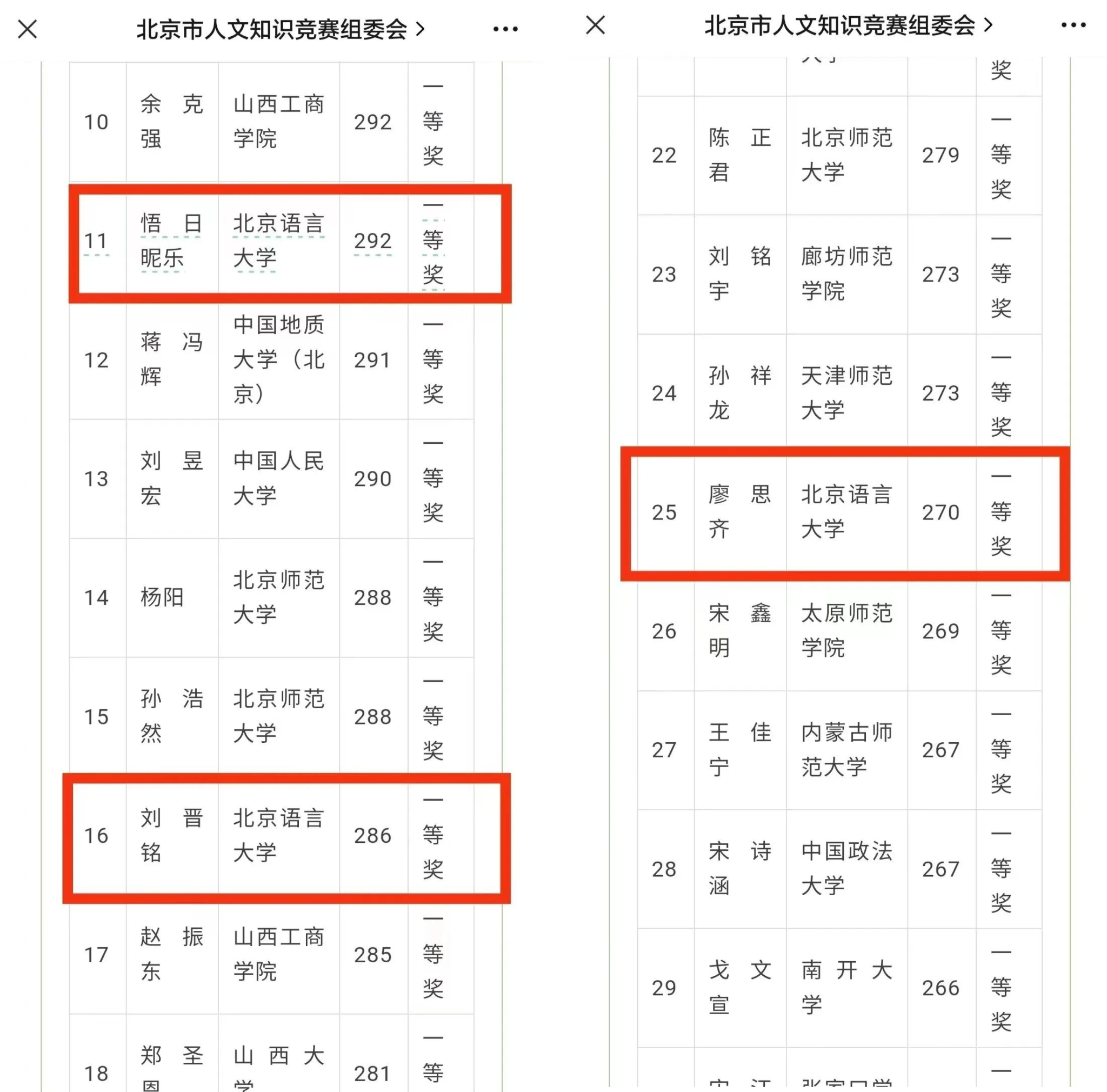 近日,华北五省(市、自治区)大学生人文知识竞赛决赛综合获奖名单、北京市大学生人文知识竞赛决赛单项奖名单公布。文学院2021级汉语言文学专业本科生悟日昵乐、刘晋铭、廖思齐共3名同学荣获华北五省(市、自治区)大学生人文知识竞赛决赛综合成绩一等奖。