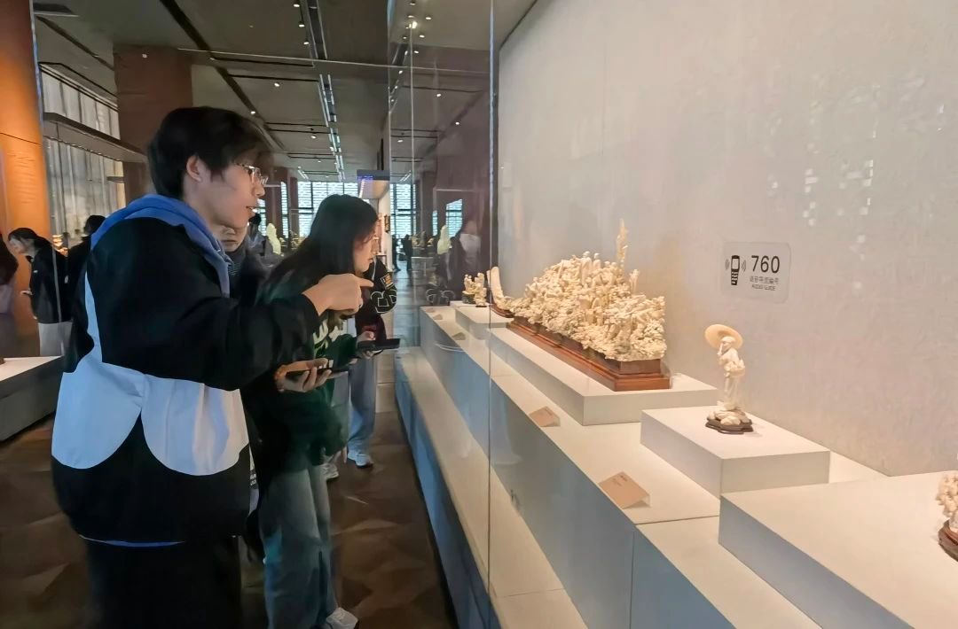 本次研学活动选取了反映中华服饰演变历史的“中国历代服饰泥塑”展览与展示中国工艺美术的历史、新中国工艺美术的成就和新时代美好生活的动人篇章的“文脉华兹”展览,作为主要研学展厅。此次活动打破班级和年级限制,以联通党团班的分组形式开展,由党支部党员、积极分子、23级班委担任组长,设置了“见微知著”“珍品细览”“追本溯源”三个互动游戏环节,帮助同学们在参观的过程中,更好地掌握中华工艺美术知识,以轻松且富有趣味性的方式激发大家的学习热情,在体验中学习,在实践中成长。