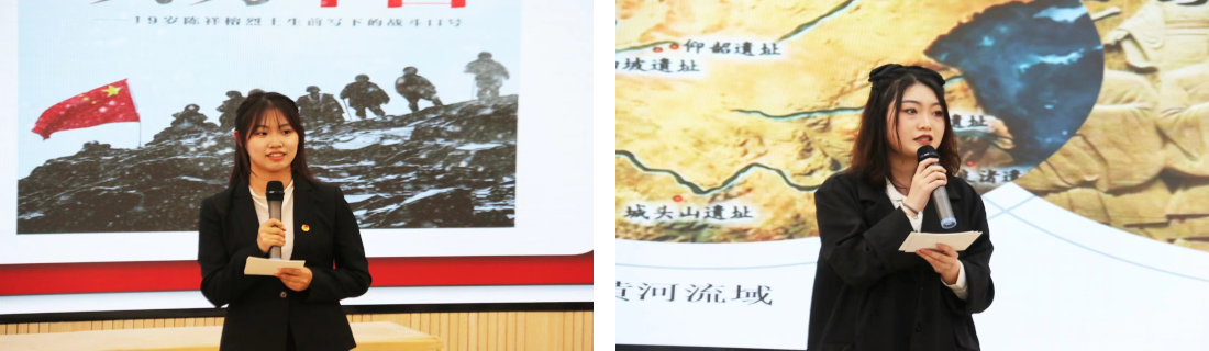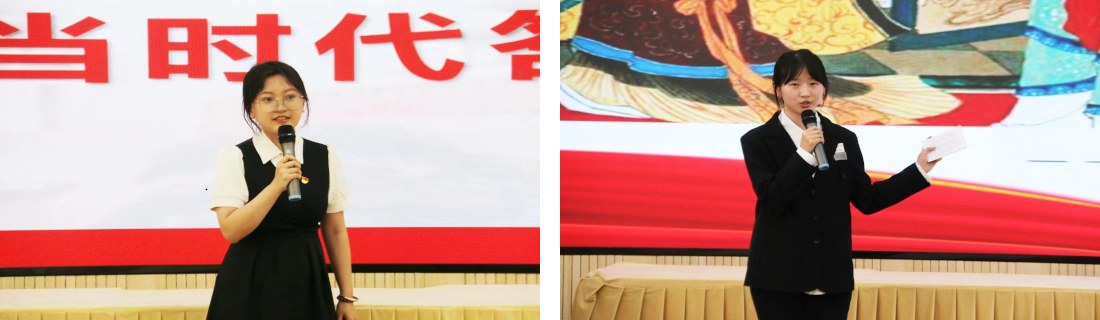 文学院文化理论宣讲员比赛优秀获奖选手代表也现场展示了宣讲作品。文学院本科生第一党支部程紫嫣带来“致敬百年赶考路,争当时代答卷人”主题宣讲,她聚焦“一栋建筑”“一件衣服”“一封家书”“一份叮嘱”这“四个一”,讲述了毛泽东同志率领中共中央机关“进京赶考”、入驻香山这段红色历史。2023级古典文献学本科生金芷伊、董柔萱与2022级汉语言文学本科生薛楠分别以“九州凝古智,麟阁多才贤”与“万里蹀躞归华夏,创新发展奏华章”为题,立足中华优秀传统文化,阐述她们对于中华优秀传统文化的创造性转化与创新性发展的理解与思考。比较文学与世界文学文艺学党支部党员姜迈千带来“诵读百年红色书信,弘扬青年信仰力量”主题宣讲,她带领大家解读百年征程中的五封动人书信,使青年学子感受到了信仰的力量。