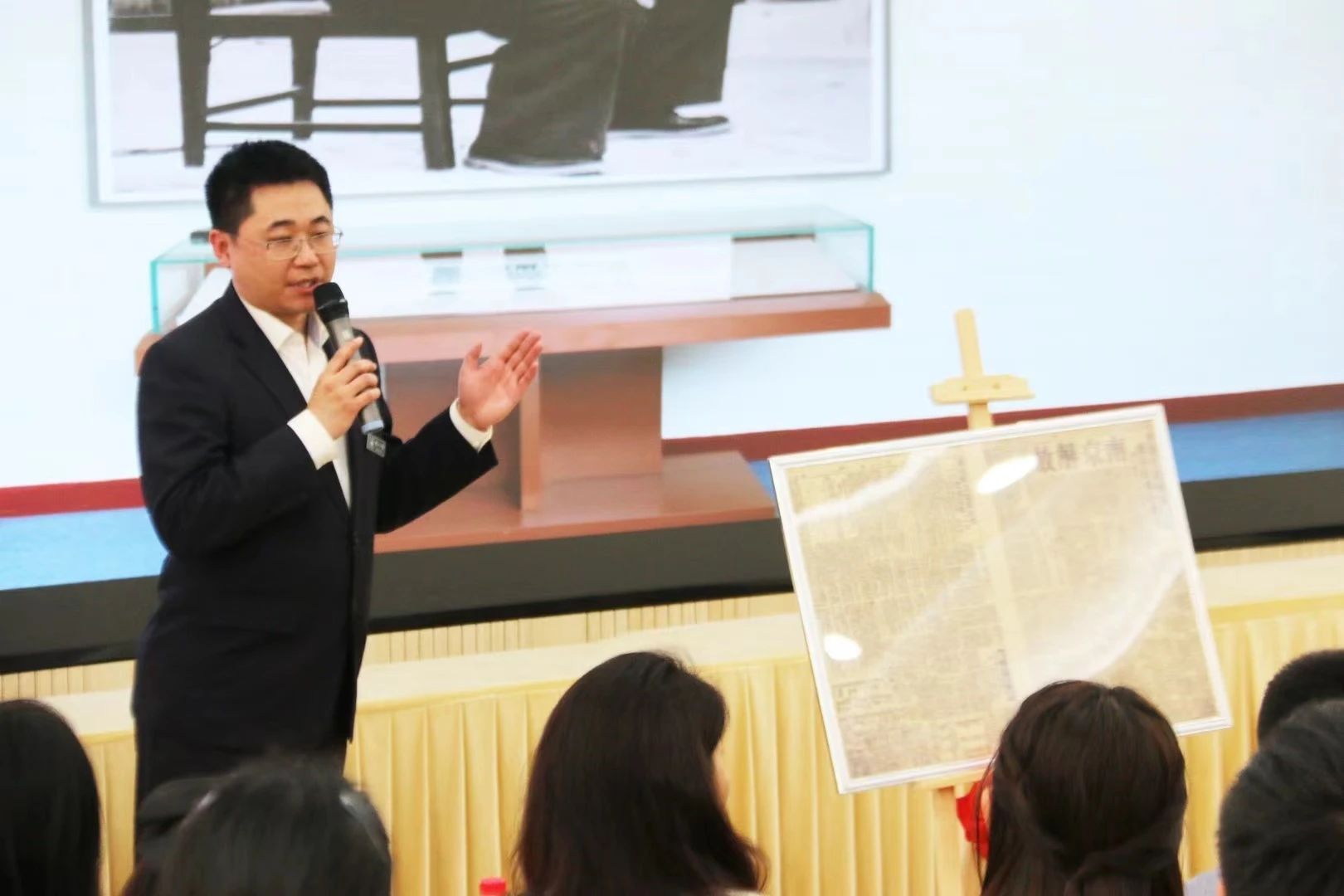 会上,香山公园红色文化宣教员、党的二十大代表、北京市先进工作者贾莉首先为文学院师生带来“为新中国奠基的地方——香山”情景式微党课。她围绕香山的悠久历史与八处红色革命旧址,采取视频、图片相结合的形式,生动地阐释了我党选择进驻香山这一历史性决策背后的原因,并与大家一同重温了中共中央“进京赶考”这段辉煌的红色历史。香山红色文化宣教员杜文为大家带来了1949年4月25日刊载南京解放消息的《进步日报》红色展品。“博协杯”全国博物馆讲解大赛三等奖获得者、香山红色文化宣教员张陆宇为我们讲述了毛泽东同志在双清别墅创作《七律·人民解放军占领南京》这一壮丽诗篇背后的故事。同时,他们也期望同学们能走进香山、走进双清别墅,亲身感受红色革命精神。