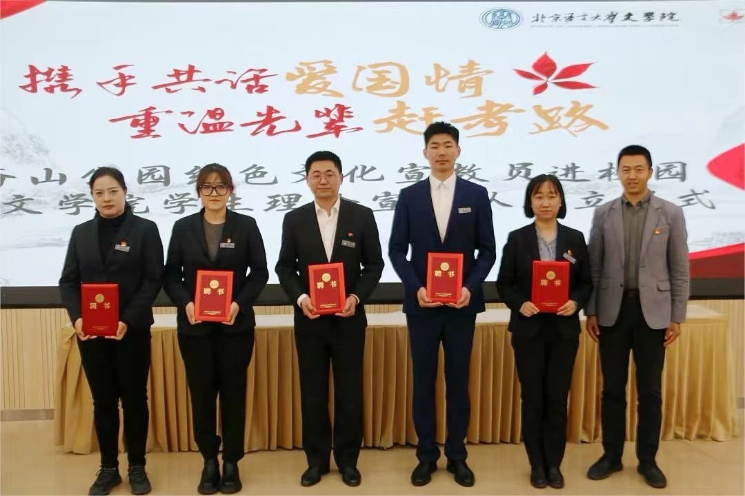 随后,我校学工部部长、学生处处长武玉洲为5位香山公园红色文化宣教员颁发“校外辅导员”聘书,以期进一步深化合作,帮助学生厚植爱国情怀,增长宣讲本领。
