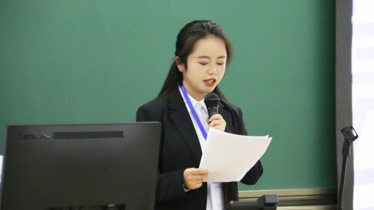 全体起立奏唱国歌后,文学院团委书记玄铮老师致辞。她向各位代表提出了三点希望,首先是希望代表们可以明确自己所肩负的学生代表职责,在选举过程中,选举出能够代表文学院的,具有全局观念和模范带头作用的优秀学生代表。第二,希望各位代表能够成为班级与学院之间的桥梁,积极反馈学生实际困难,与学院、与同学们携手共同努力,共同解决问题。第三,在未来,希望学生代表能够展现出智慧与力量,为学院、学校的建设出谋划策。