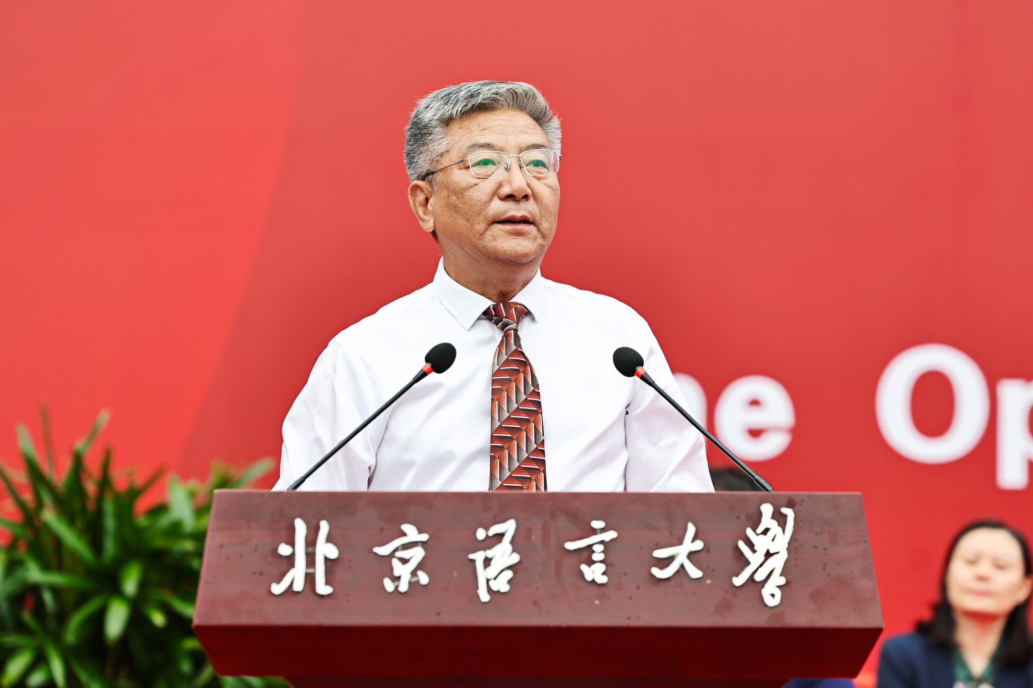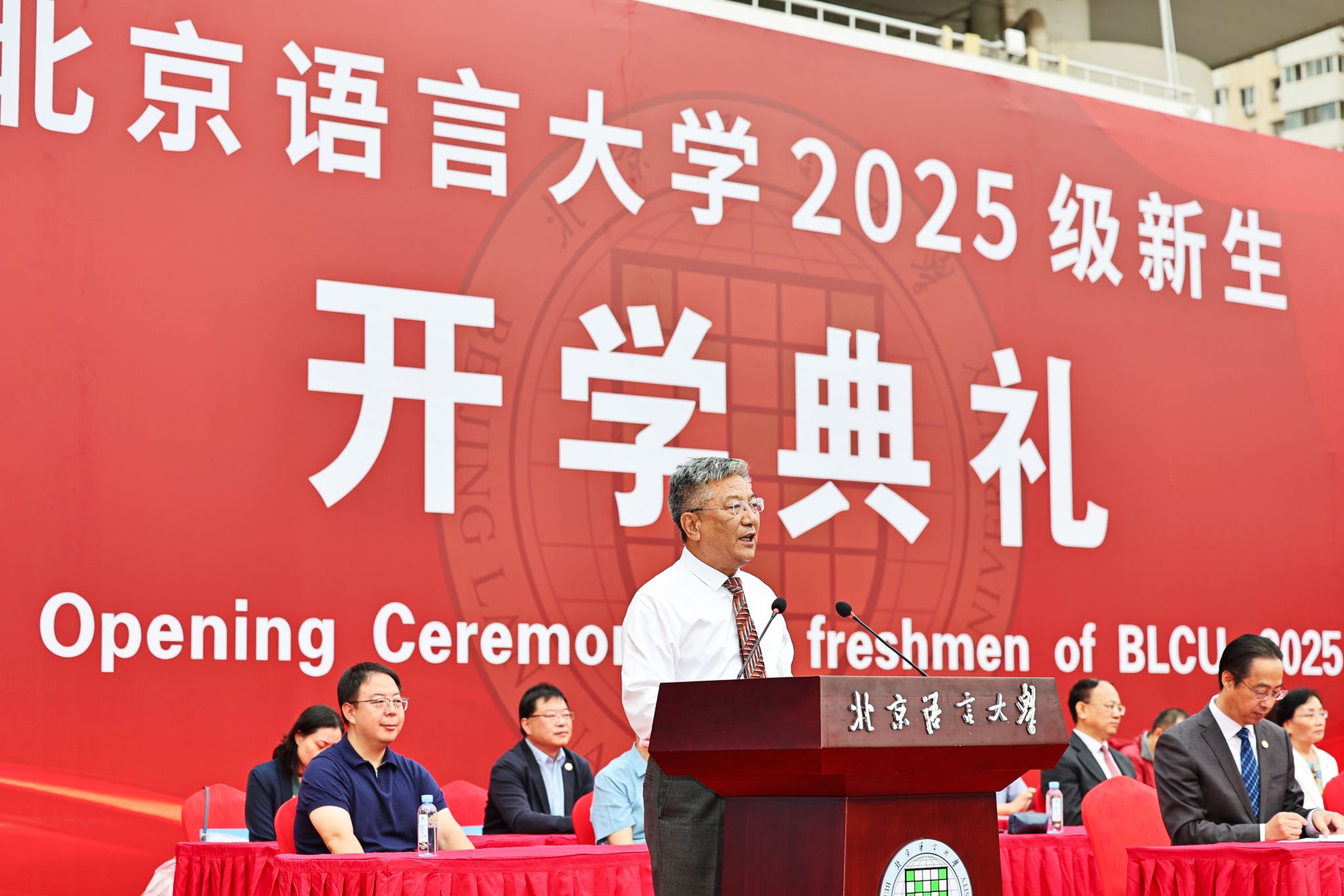 北京的九月,秋爽景明,惠风和畅。今天我们济济一堂,欢聚于此,以数千年语言文字为舟,以辉煌灿烂的中华文明为帆,共同见证新同学在北京语言大学开启求索之旅。作为一名古典语言文字学的教书人、一名从教五十周年的老教师,我很荣幸能够代表北语的同事向同学们表示祝贺,祝贺你们成为新的北语人!