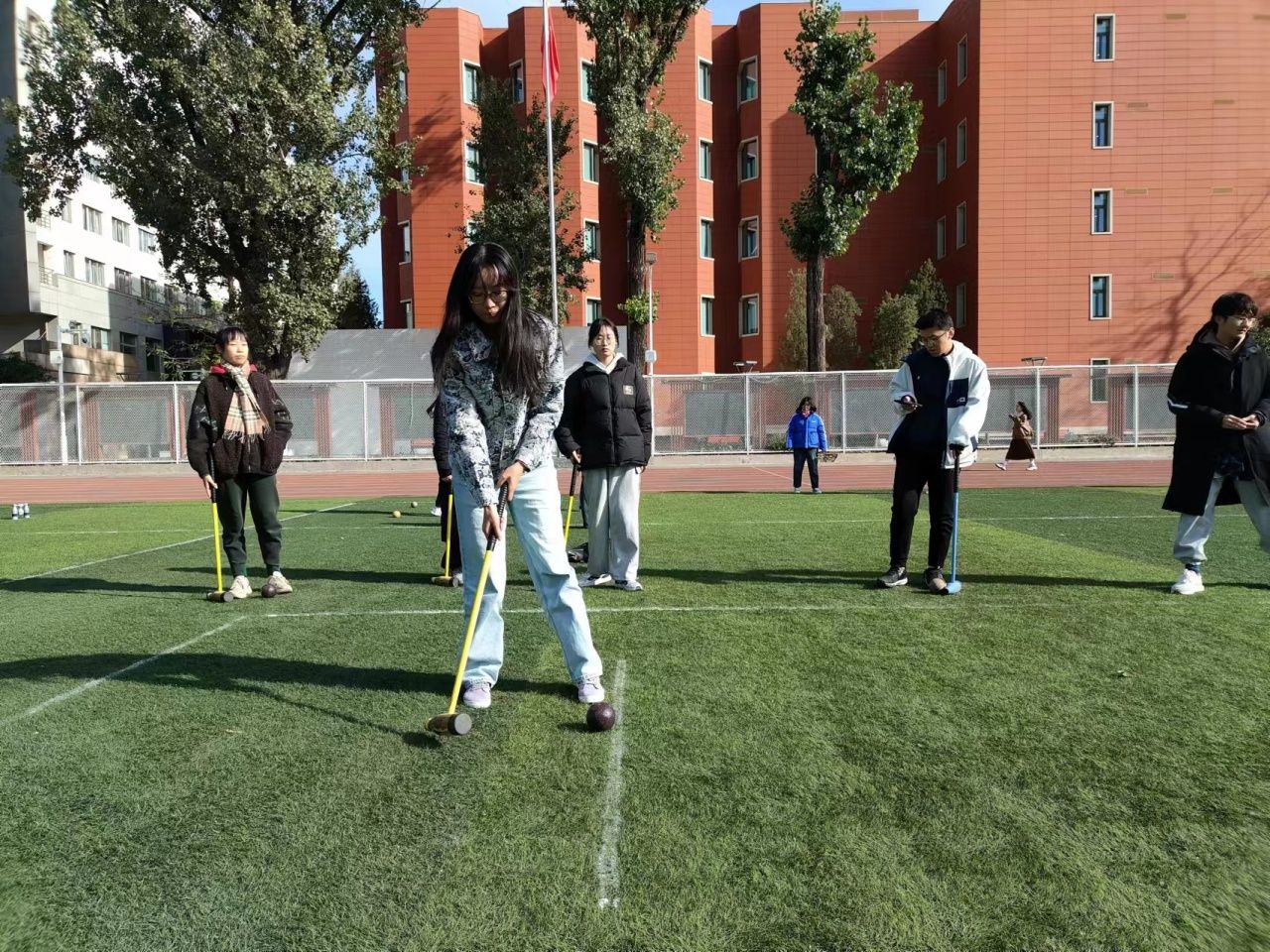⑤2023年11月10日下午,校木球比赛在风雨操场进行,文学院“一杆进门队”获得比赛冠军。