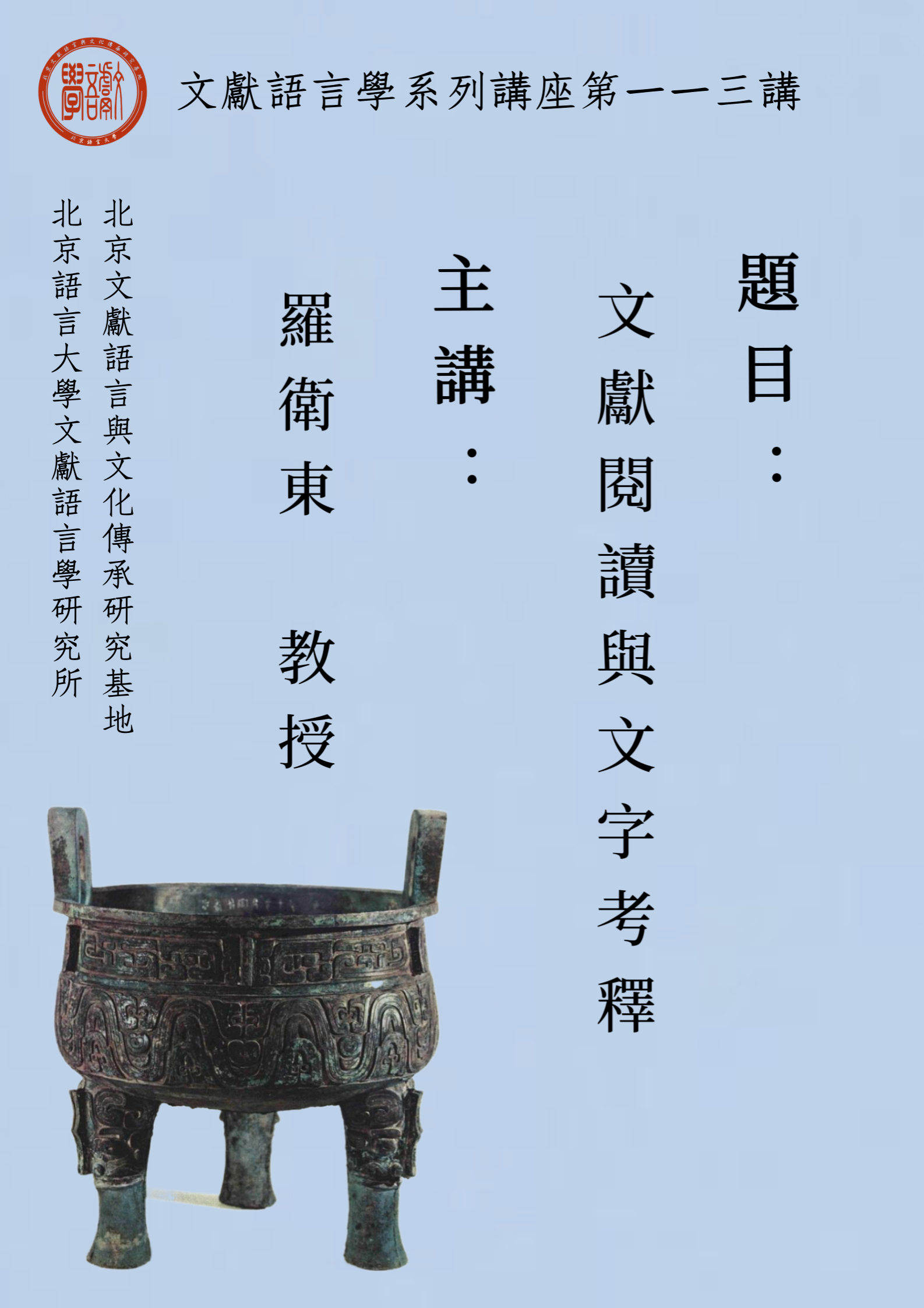 ④2023年11月10日,由北京文献语言与文化传承研究基地主办的文献语言学系列讲座第113讲在北京语言大学教四103室顺利举行,罗卫东教授作“文献阅读与文字考释”主题讲座。