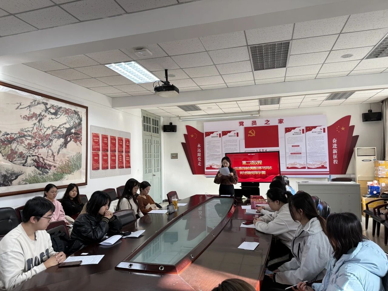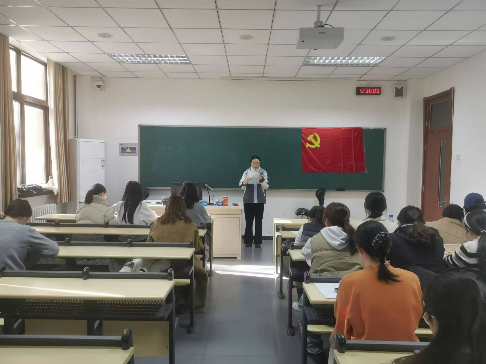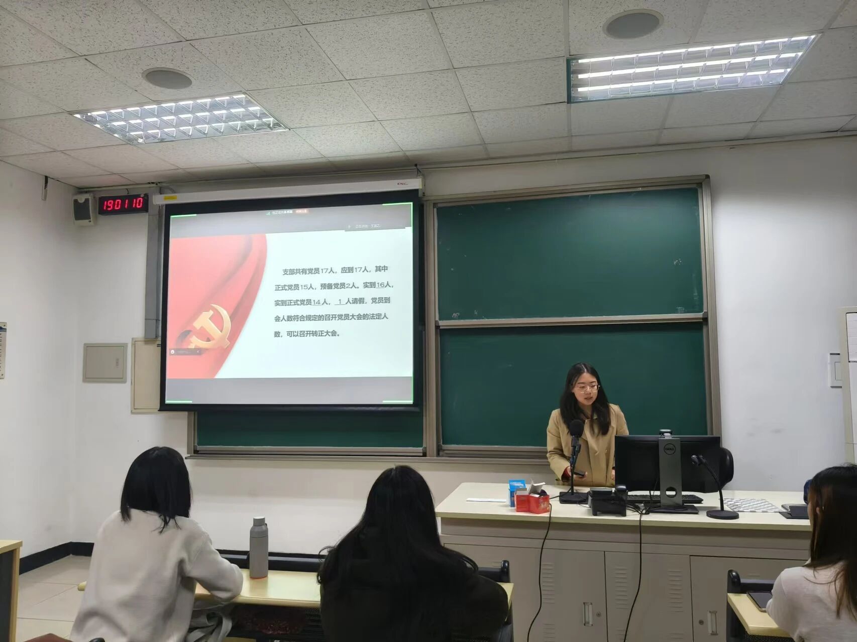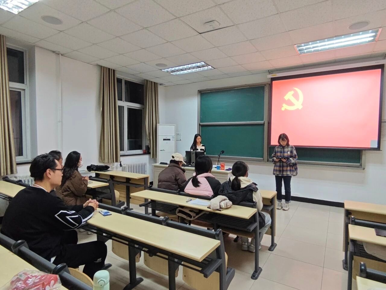2024年11月27日晚,文艺学比较文学研究生党支部于教四106教室召开党员大会,讨论接收葛珮芸为中共预备党员以及预备党员郭峰同志转正事宜,同时举办了十一月“学规定鸣警钟,悟精神展担当”主题党日活动。