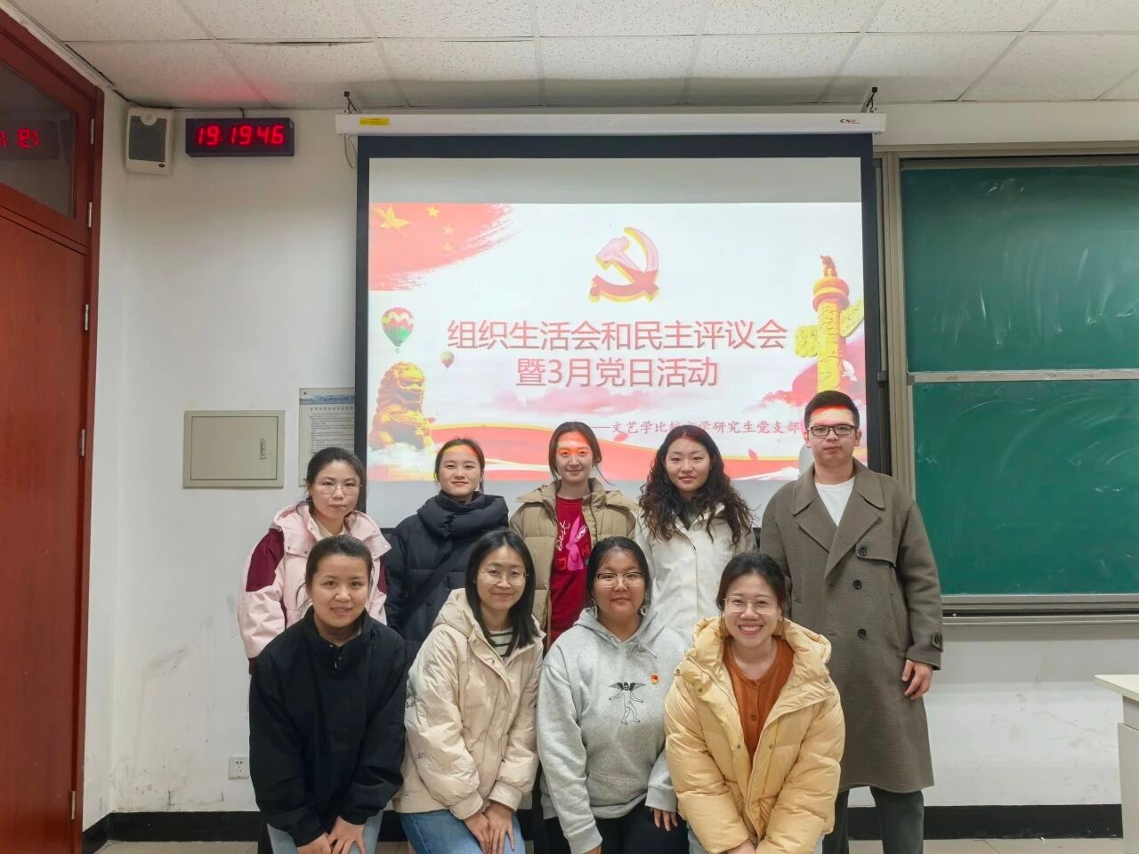 2025年3月20日,文学院博士生第二党支部于教四108教室开展组织生活会和党员民主评议会,并组织3月党日活动。