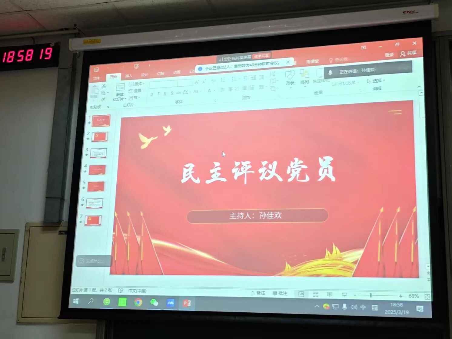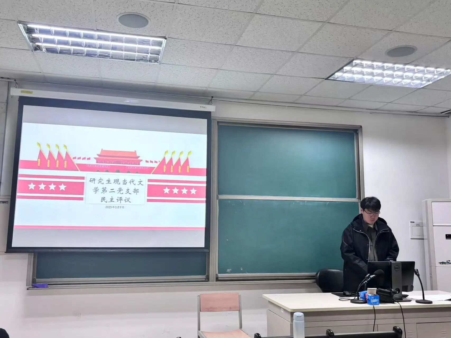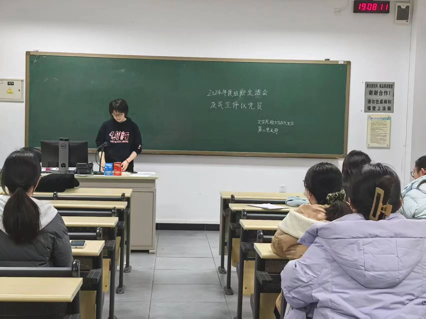 2025年3月25日,文学院本科生第一党支部在主南楼107教室开展了组织生活会、民主评议会与“两会”精神主题学习活动,全体党员参会。