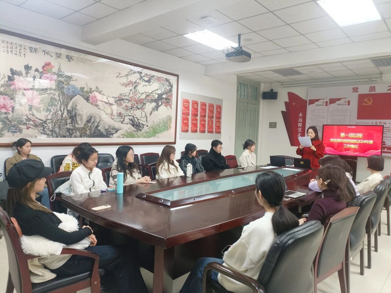 2025年3月7日,文学院中国现当代文学专业第一党支部于教四106召开组织生活会与民主评议会,同时举办主题为“聚焦两会热词,感悟中国智慧”的三月党日活动。