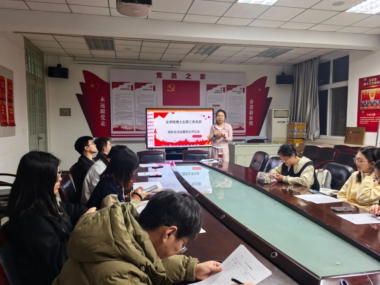 2025年3月14日,文学院博士生第一党支部于教二108召开组织生活会与民主评议会,同时举办主题为“2025年两会热点学习”的三月党日活动。