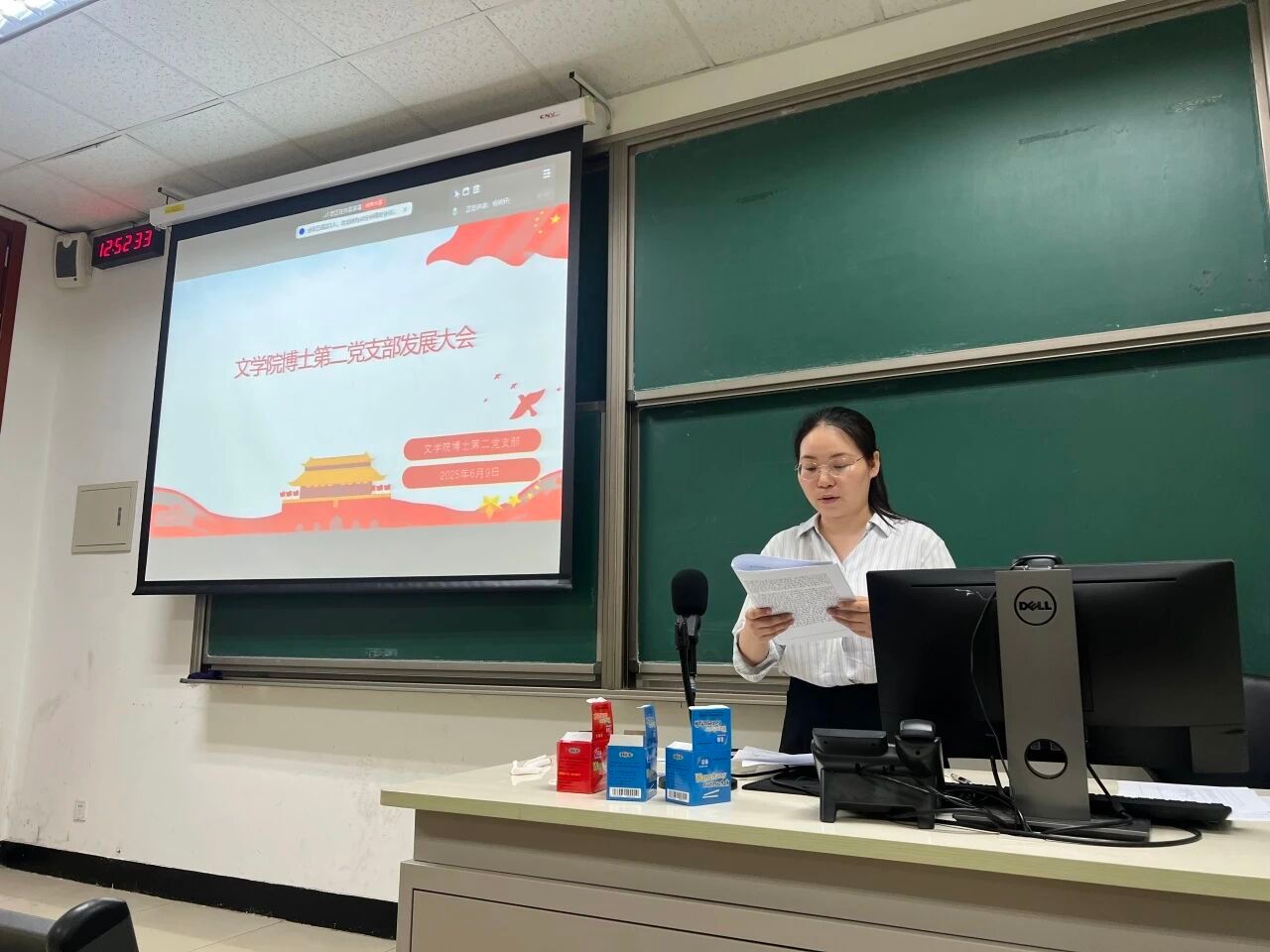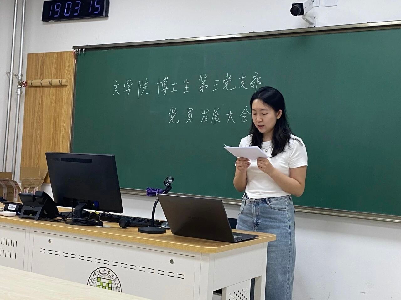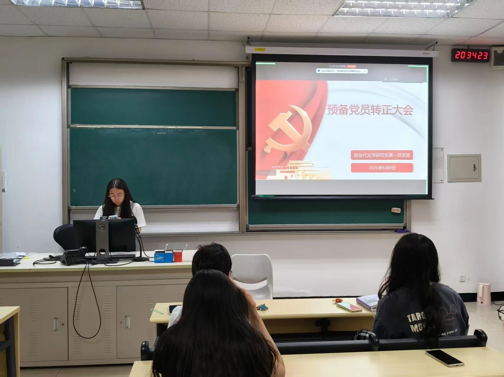 2025年6月9日,文学院博士生第三党支部在教二105开会召开接收预备党员大会。