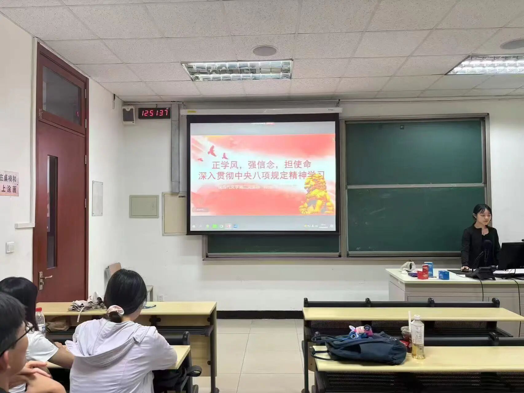 2025年6月22日,文学院硕士生中国现当代文学第二党支部于教四106教室,围绕大课内容开展主题为“正学风 强信念 担使命,深入学习落实八项规定精神”交流研讨活动。