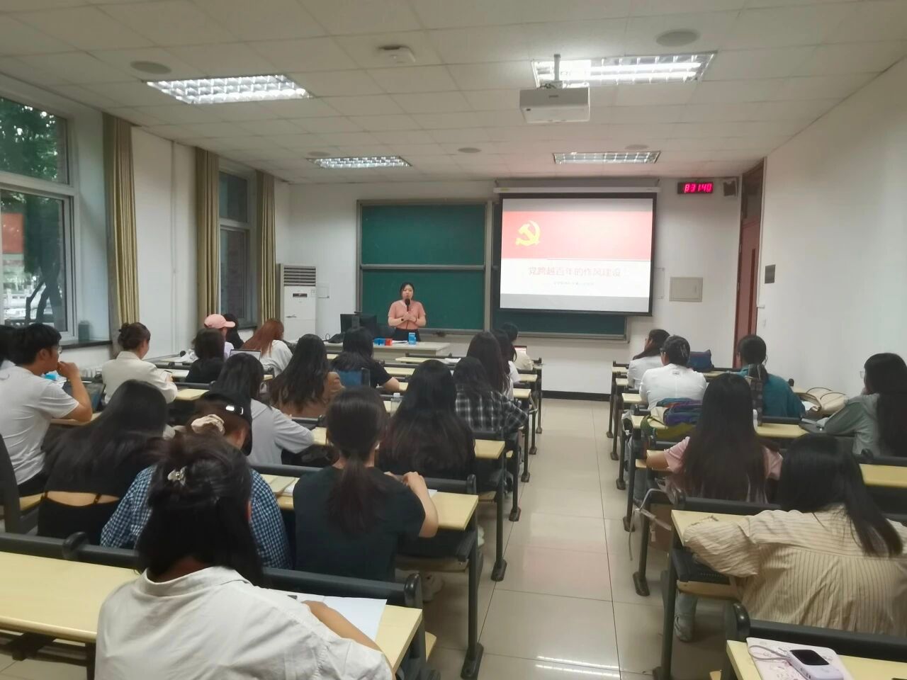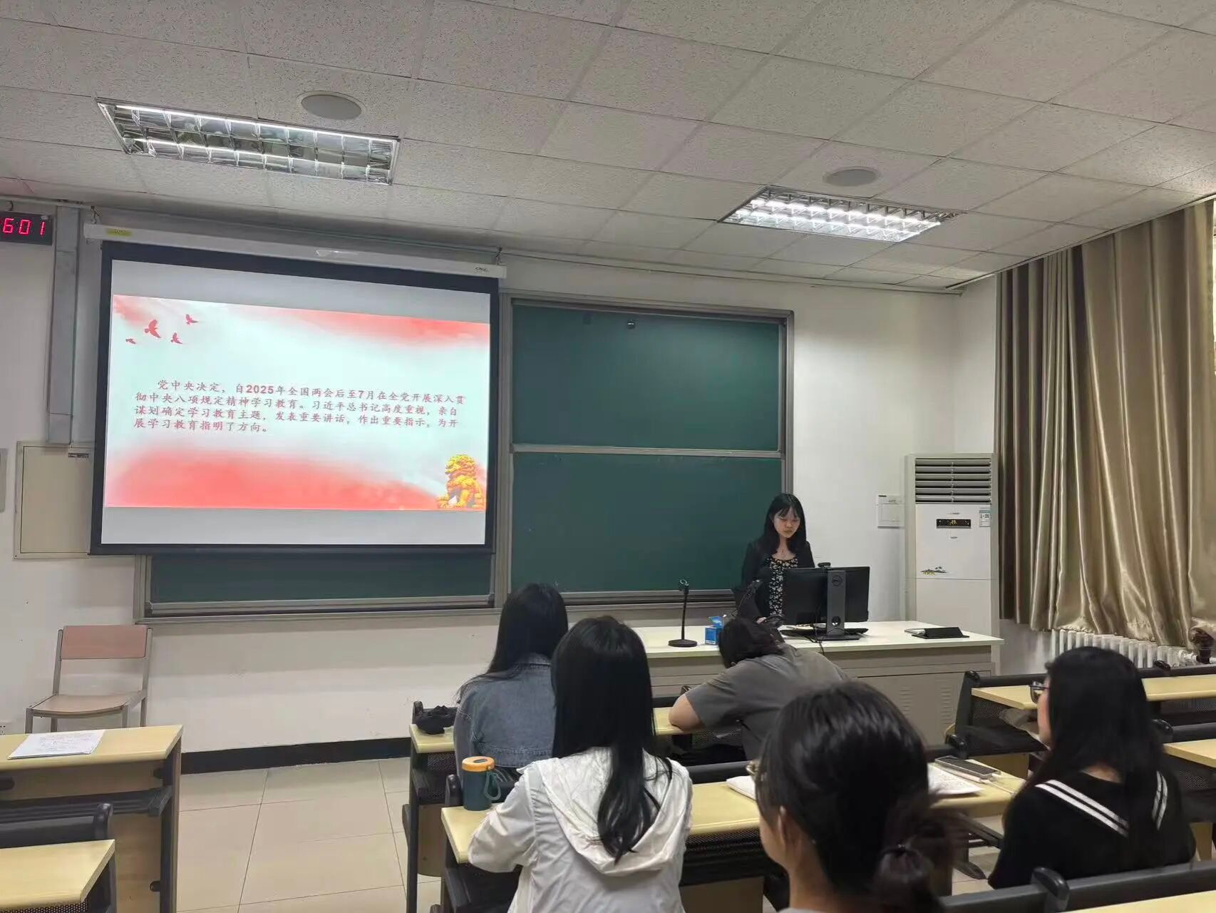 2025年6月9日,文学院本科生第一党支部在教四101开展主题为“党跨越百年的作风建设”的党日活动,支部全体党员参会学习。