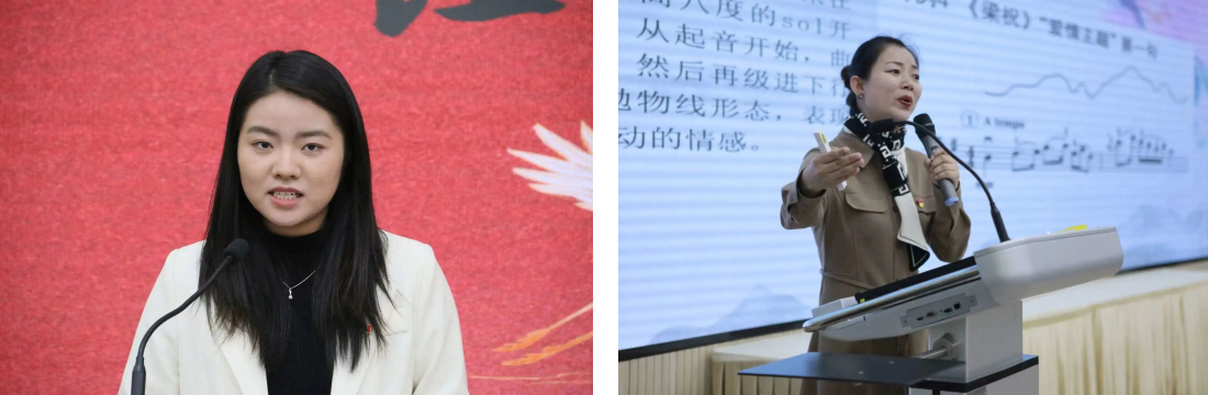 “音乐微党课——让传统音乐在创新中绽放”环节由中国音乐学院音乐学系本科生党支部书记冯茵瑶主持。音乐学系教师党支部的袁环副教授聚焦“小提琴协奏曲《梁祝》对中国传统音乐的创造性转化”的主题,分别从显性层面与隐性层面来阐释这一主题。她总结到,小提琴协奏曲《梁祝》将多种传统音乐素材融会贯通,中西合璧,雅俗共赏,具有鲜明的民族性、时代性和艺术性。音乐学系本科生党支部学生牟洲、何雅雯、林民栋以及研究生党支部学生李成城与张炜悦、孔莹分别带来“北京民歌《探清水河》的多样性转化与实践”、“我与《中国音乐地图》”、“元宇宙中的戏曲音乐”、“‘双创’视角下的红色歌曲的传承与发展——以《映山红》为例”、“河北民歌与歌剧《白毛女》中喜儿的音乐形象塑造”等五场主题微党课,选取典型的例子,并从调式分析、演唱方式、歌曲背景、主旨情感等不同的角度探讨并阐述传统音乐是如何在创新中绽放的。