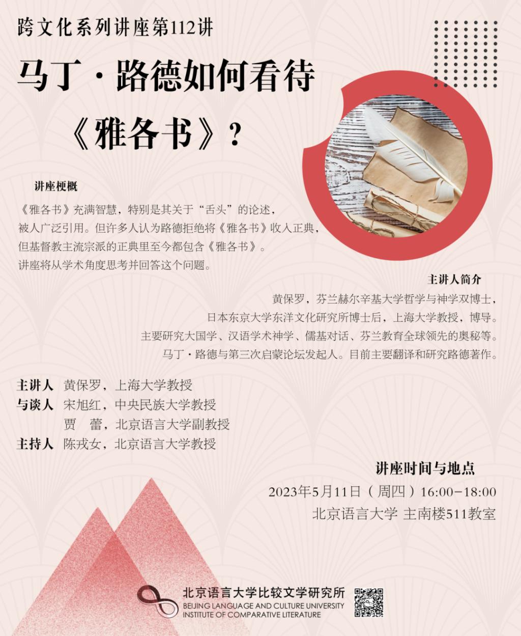 《雅各书》充满智慧,特别是其关于“舌头”的论述,被人广泛引用。但许多人认为路德拒绝将《雅各书》收入正典,但基督教主流宗派的正典里至今都包含《雅各书》。讲座将从学术角度思考并回答这个问题。
